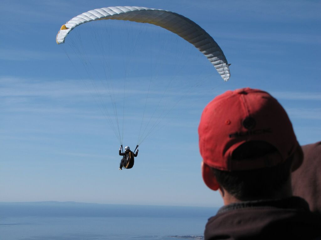 Boyah! It was a stellar day! I launched around 11 and Dean and I scratched around the TF for 30 minutes or so before I got the ride to 3900 that I was looking for. Andy D had just made the glide to Montecito and I followed all too willingly. Dean decided to go West so we didn't see him much after the TF. Got a bunch of turns in over shadow before hitting the volcano at montecito. The tops were consistently 4k but you'd get down to 3100 on the crossings and it was rowdy and disorganized below 3300. Once you got through 3300 you knew you were ok. I followed Andy and Art down a few peaks before we bailed out for Padaro lane. We knew it wasn't the day for the pass but it was SO tempting. I tried to get a shot of the dolphins below us on a deep pass over the ocean but they didn't come out. Quick ride back to launch in Andy D's truck and the 3 of us had some spectacular flights at 2pm. We ran into Milley at Parma and he turned down a second flight.....That'll learn ya! The lift had smoothed and the rides were bonehead to 4k. We all bailed for East Beach and made it easily with tank-ups over the Riviera. Spectacular way to get my feet wet again after 6 months off and it was great to see so many pilots having a go at it! Looked like Brian Stratton took a shot downrange and came up one beach short of Padaro. A new generation of pilots are about to send it through the pass!