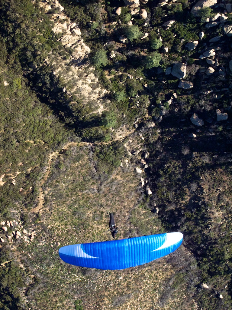 Morning check looked like a lot of East aloft with a good lapse rate. The Nuthouse is scary in East and Fly Above All was meeting at Parma at 10:30 ish. Arrived around 10 to find some of the usual suspects including Chris Paul. Good to see some of the old Topa crew out again. Off launch around 10:45, behind CP who was already up at the R&R. I'd called an impromptu task to the VOR>Montecito>Parma or the Beach so CP was on course. Easy climb from Skyport and transition to the R&R. Struggled there for a few minutes before getting to the high 3s. Struggled again low at Cathedral with CP. It was more rock climbing than flying but did manage to get back into the game. Chad had connected higher and was already on glide for WB. I followed and we floundered briefly before finding decent climbs to the low 4s. Chad was finding it out front but I wasn't willing to give up terrain to go check it out, which cost me time. Arrived just over No Name and found a great climb to 4500. VOR was easy to tag but didn't find much in the way of support so swung back around to No Name. The East aloft was making itself apparent with a chunky layer between 3300 and 4300 and strong drift but smoother lift above that. Suffering back through the weird layer at No Name got me to 4750 and an easy glide to WB. Should have kept going but stopped to look for lift and found myself low on the front ridge. Had to struggle back to the low 4s for the transition to Cathedral. Easy climbs on arrival back to 4500. I was starting to feel a bit fatigued by the rough layers and my fingers were baseball bats again despite the 3 glove layers. Most of the pilots were heading to Parma or the Beach by that point and Chad and Chris Paul had already headed out ahead of me, bypassing Montecito. Had nothing to prove by bashing my head into the East just to hit Montecito so bailed for the Beach from Cathedral detouring to Parma when logistics got the better of me. Great day with spectacular climbs and fun going in a direction I never go. With a West wind we'd have had a good crew flying to Ojai. Looked like Aaron and a Blue/White glider with him tagged No Name and Montecito so kudos to those guys for chasing it.