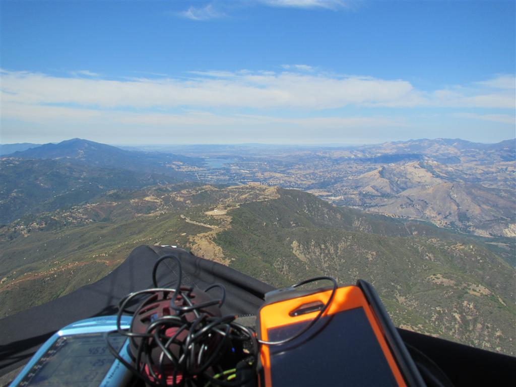 caught a half full, fired up eagle bus up to ej bowl. steam engined off about 11ish with bobA and climbed a bit at launch before heading to the horned up g-spot and she put out an easy 4300. headed west with bobA and got my highest of the day at no name at 4700. BobA got 5k at altenator. boated around VOR for a bit and bob tagged painted cave. back at no name we met up with tiMAYYYY!, Jah Lyon, and then chris m. at altenator. floated around RR/Thermal Factory looking way the hell up at Bart and Cort lookin all sexy, before heading to Monticito Peak. i kept fishing on without getting much, but when i looked back chris, tiMAYYY!, BobA, Jah Lyon were specked at Monticito @#$%%@! they all came cruising over my head at layer cake. BobA turned around and made it back to Westmont, and the rest of us went to Castle. Jah and Chris flew to Padaro from there, and tiMAAAyY! and i made it down to the Powerlines eventually. Got to 4500 and glided to La Conchita. Fun day! Ran into a Sue and Rose from La Conchita who used to PG with ya'll in the 90's. She said to say hi to everyone! Michele had a nice tandem flight and swooped all of us up. Thanks so much Michele! Good times with so many gangsta friends in the air!