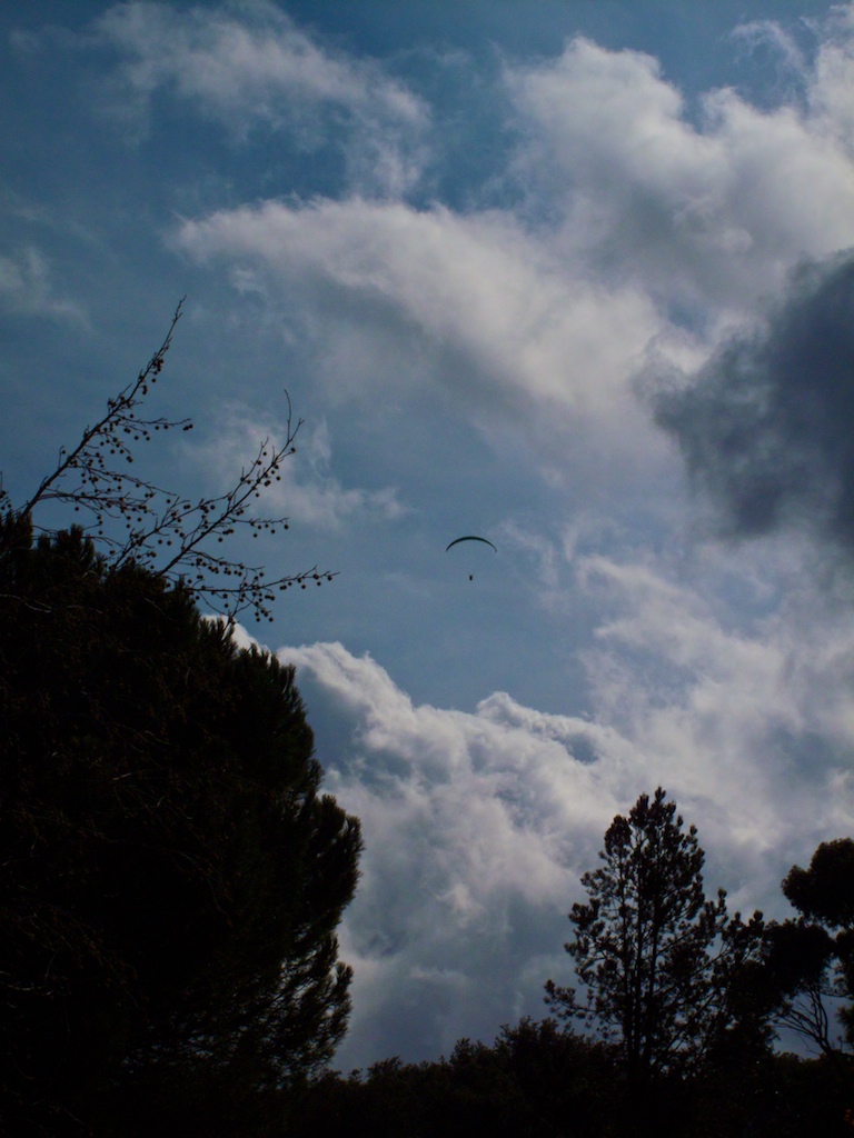 Connected to the clouds over the Holy Hills, denied at Cathedral, flushed into East side of West Bowl, rocked around in a strong thermal crossing the canyon, climbed easyily above West Bowl over the rocks, moved onto Noname, arrived low but pulled up and over the front spine and then over the top...