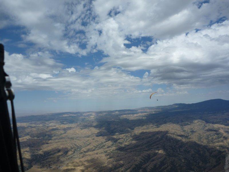 The glide to Dry Canyon was bouyant with a few stops along the way to tank up with some light lift. I had about 83 when I got to the road, topped it up to 96 and headed for the Badlands with Jonas.