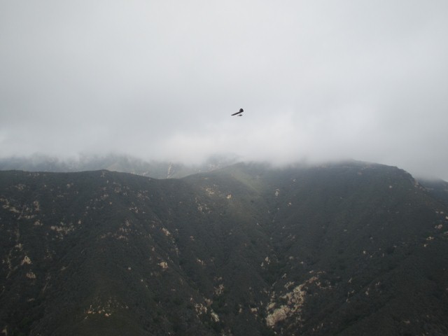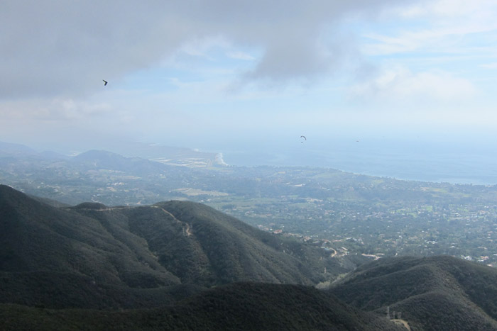 Completely surprised by the LaCumbre Peak stating calm winds after earlier forecasts had predicted 10-20 from the north with gusts to 35. Clouds in the mountains, sun in the flats, no wind - not a bad prospect for good winter flying in SB. Cloudbase was low and the clouds were filling in pretty good, but launch was always visible when we met at Parma at 10:30. Waiting on stragglers we didn't start up the hill till after 11. As we arrived, Hammer was about to launch and I asked what kind of flight he was looking for, he said "a good safe one". I pried a little more, where do you think you might head? He replied that he had flown down to Bates a week or two ago. I guess it was in the back of my head the rest of the day. I probably launched around 11:45 to a shadowed Rattlesnake Canyon, and cloudbase out front about even with launch. Good lift at the Antennas up to cloudbase and decided to catch up with Aaron over at Parker's. We bopped along with Aaron leading every departure, and eventually Hammer was with us at Montecito Peak spine for a big whoohoo! Cloudbase was too low the whole day to ever see the ridge line so my goal was to touch cloudbase at every front/mid point in hopes of having a chance at the next bump. Some bumps were slow to trigger and some were cracking as soon as I got there. The further east I went the more clouded in we got making for lighter and lighter lift harder and harder to find. Aaron split off near Romero and Hammer had glided on, so I took my time and pushed on. I got 3 points past the castle at castle ridge and I just wasn't going up. I hung there for 10 minutes and decided I didn't want to push my luck any further with so much shade and being so low. Going straight out that spine put me up behind an orchard, some huge mansions, and maybe Toro Canyon. There was sun out front and this back bowl was poppin and when I reached cloudbase, I pushed on to Snowball. I arrived 20 feet above Snowball Peak and if I had flown straight, I would have had no choice but a top landing, so I split to the right and pushed away from the terrain a bit. The air was mixing and not as butter smooth as the whole flight had been up to that point, but I hung on and eventually a cloud started to form around me out of the blue. Bates was calling, but it's a long glide from there at 2,800 feet. There are landing opportunities along the way, so no stress, just the desire to make Bates. I came into Bates with about 60 feet and had a comfortable top landing at 1:30. A few pilots were hanging out waiting for the winds to pick up, but I never saw anyone launch. Wayne picked up Hammer who had flown to Mussel Shoals and eventually Aaron came to retrieve - THANK YOU Aaron! Fun day flying with Hammer and Aaron.