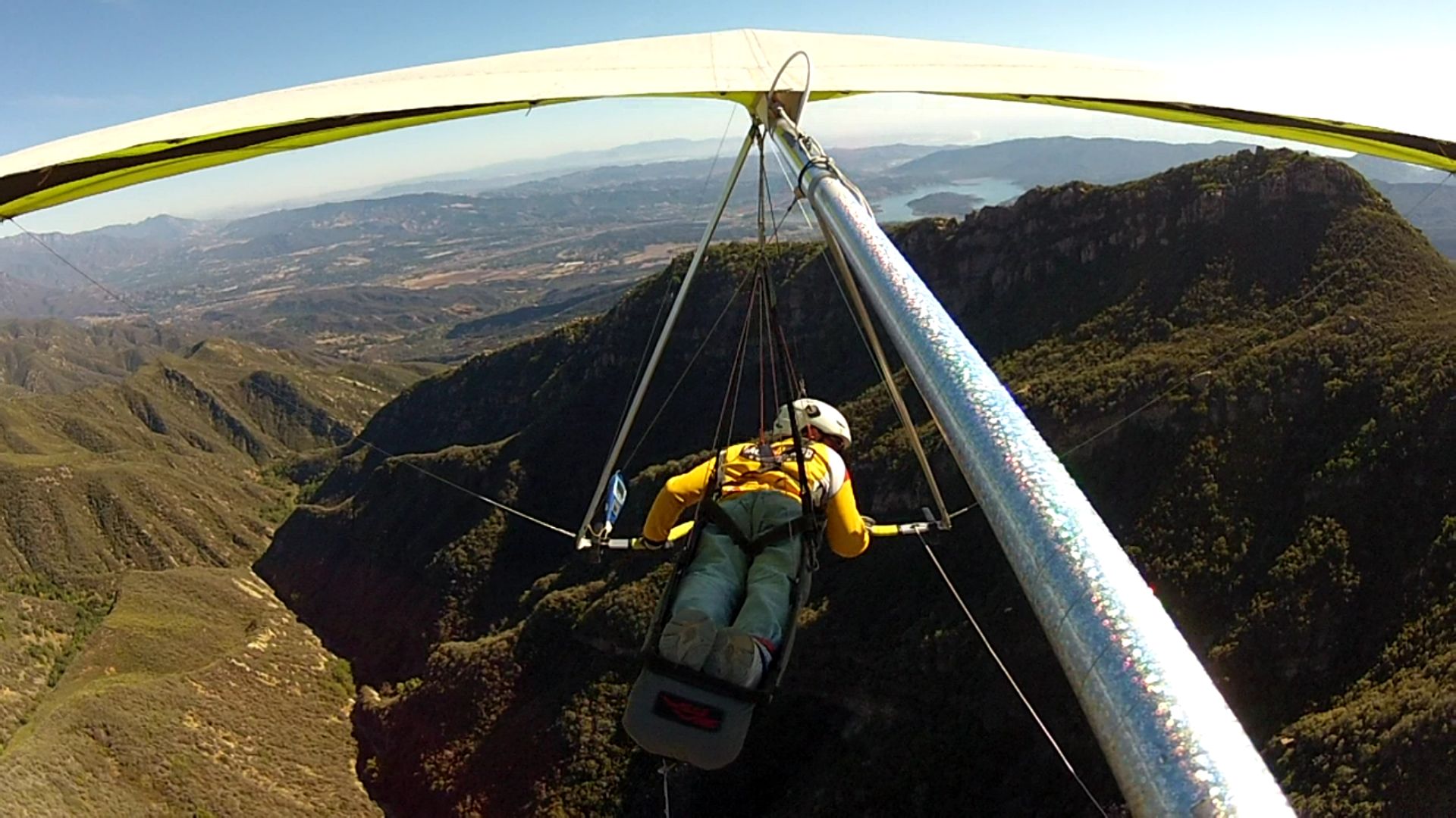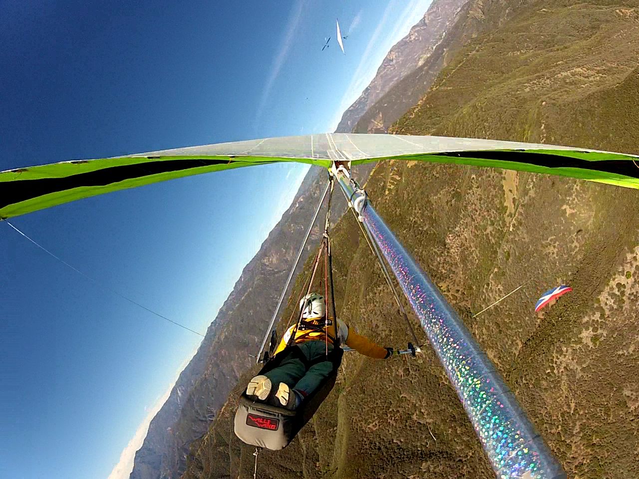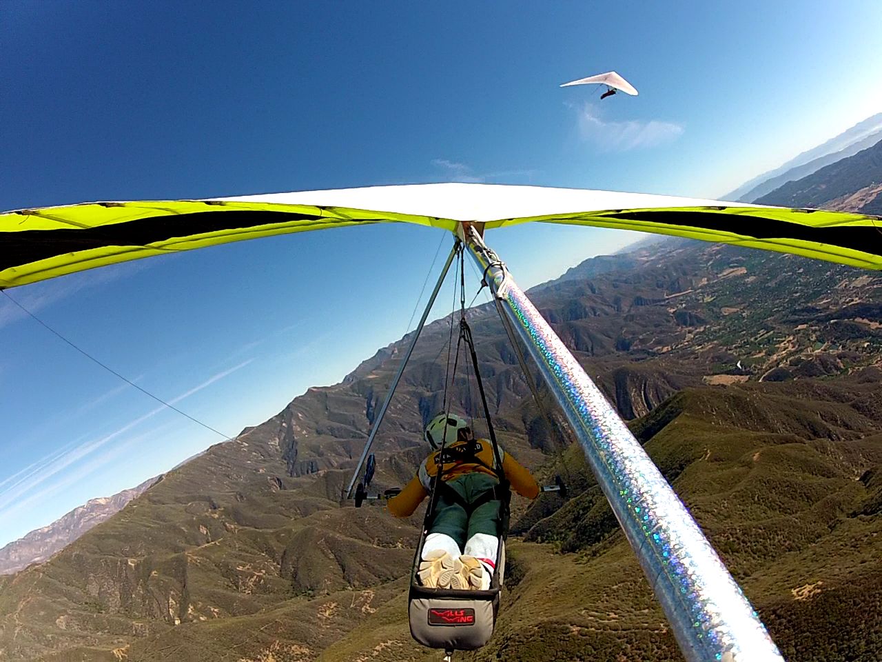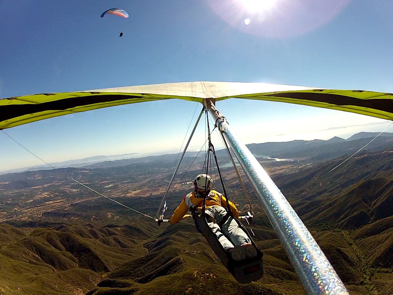 looking eastbound from the pass, Tom flying tandem w Peter