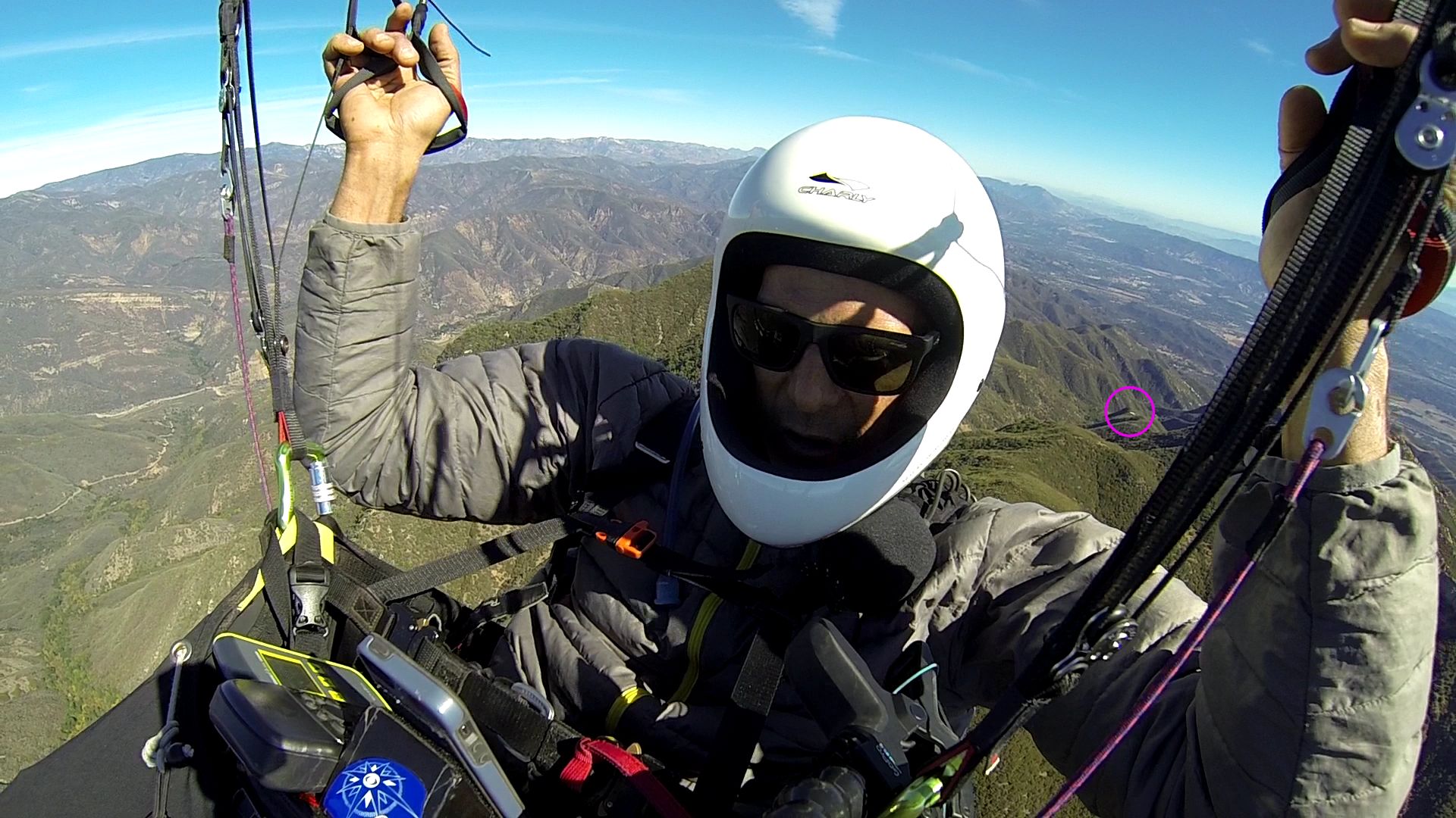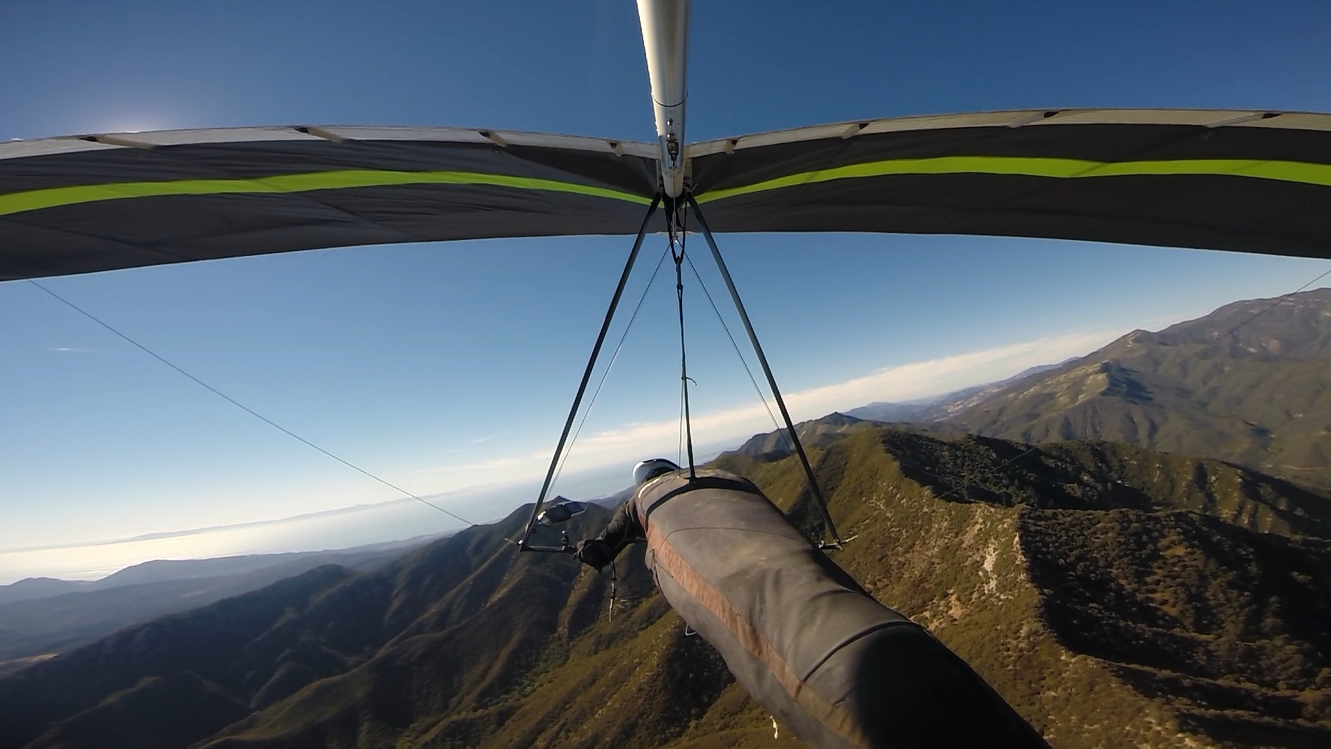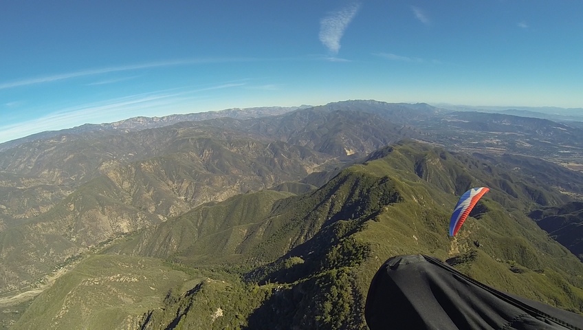 Wish I could have made the Ojai train. But, life got in the way and I was only able to squeeze time for a flight in SB. I wasn't too upset about it, considering there was a 10 degree spread and light wind. Unfortunately by the time the Eagle van made it to EJ bowl, the light wind was no more. The thermals and wind were being held at bay by the high pressure, however, when the wind and thermals broke through, we were seeing gusts up to 15 miles an hour, maybe more.