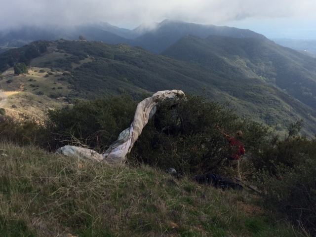 The wind is forecast to be light and the buoys are concurring, so hopefully the weak thermals will hold together. There is a little push from the north at ridgeline in the afternoon. La Cumbre was only reporting 3 mph from the NE at 7:45, but at 8:45 the reports are gusting to 9 from the NE. Still expect it to be launchable at EJ's around midday, but EJ's is likely above the inversion, so I wouldn't expect to get up from there.