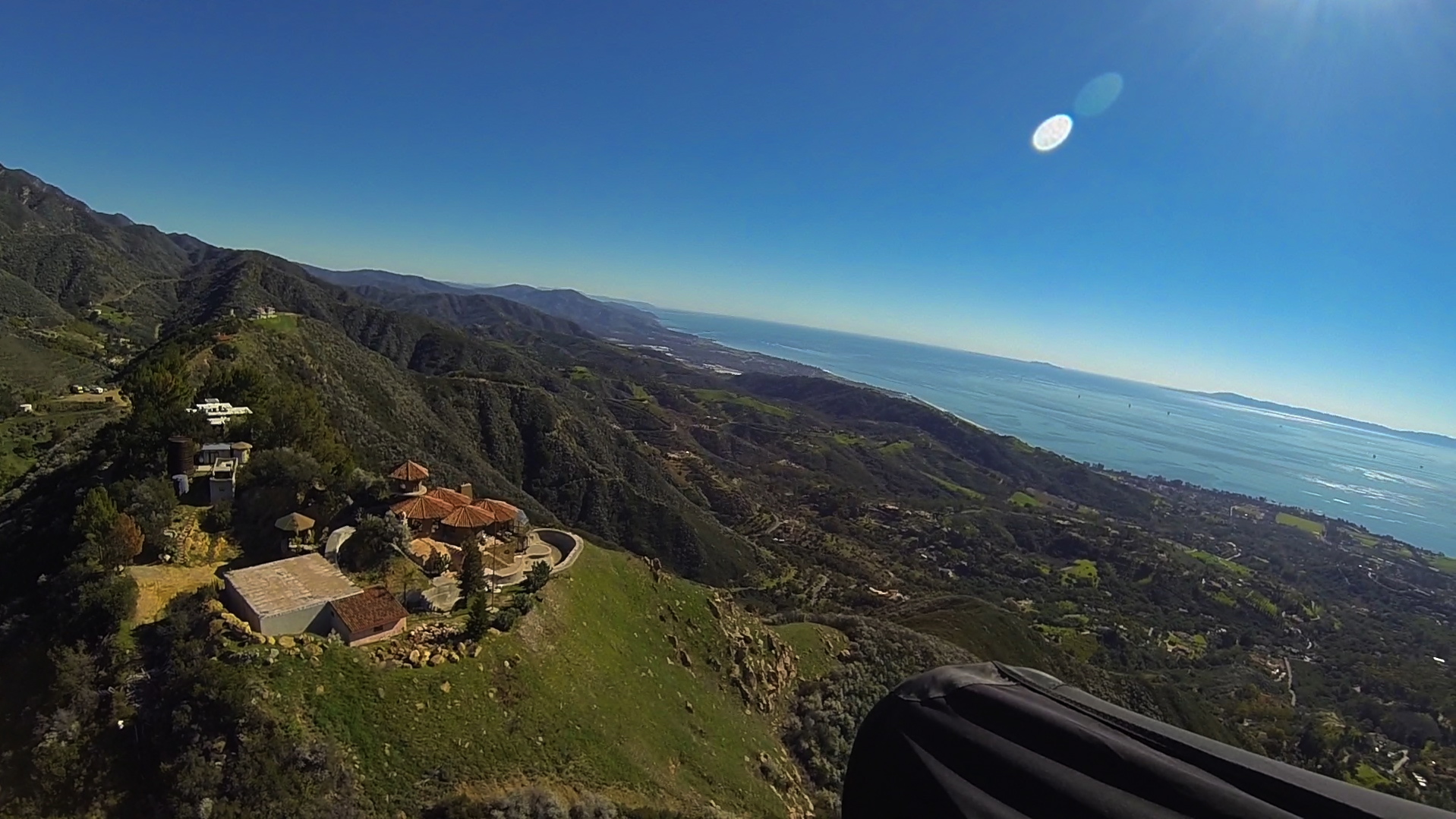Nice Photos Neal. Never has been water in the swimming pool (other than rain water sludge). Cynthia, one of our pilots from the 90s, used to live in the 2nd house from the east end of the ridge, the small adobe with the red tile roof. We launched from her front yard once or twice. I did a side hill landing next to the Castle pool in the 90's and got a tour from the owner before my re-launch. The flat roof "garage" is his helipad.