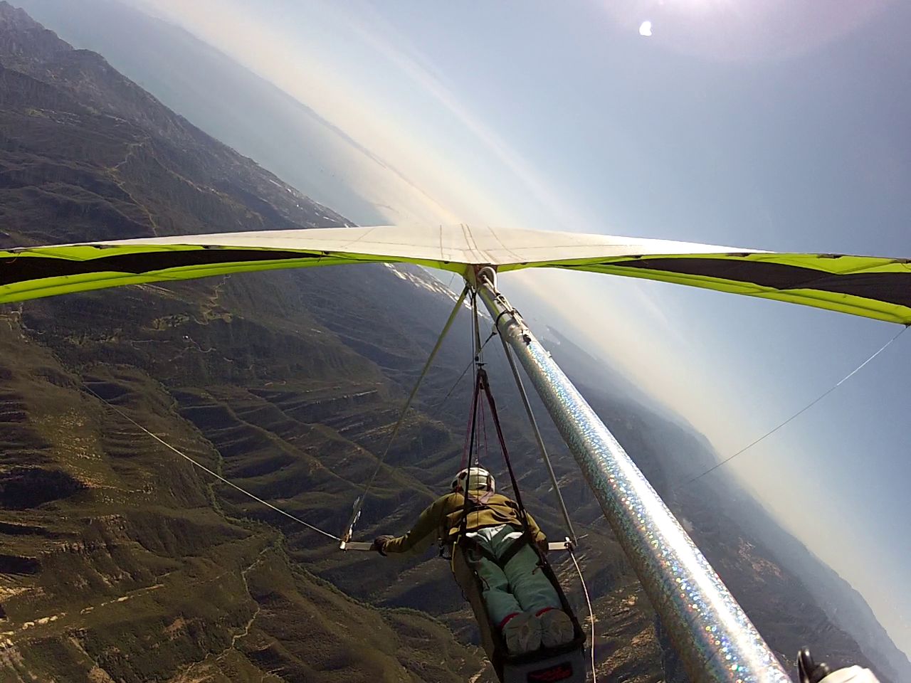 It takes me a long time to set up my gear and Hammer already tagged Painted Cave and was on his way back before I walked up to the ramp. I hucked off around 1245 and had slow climbs in the house thermal then TF to 4K. I neglected to inform Hammer I was blowing off PC for my first leg and heading East. Well that didn't go so well. I did okay at Montecito with Tavis and Matt coring up rapidly from below me. Did I mention just how bad the local barometric pressure was? Worse than mid-July. That's how bad. Thermals were very skinny and ratty with cascading edges that sent you over the falls. I debriefed Mario on our drives home to explain that he was perfectly sane in his description of the flying.