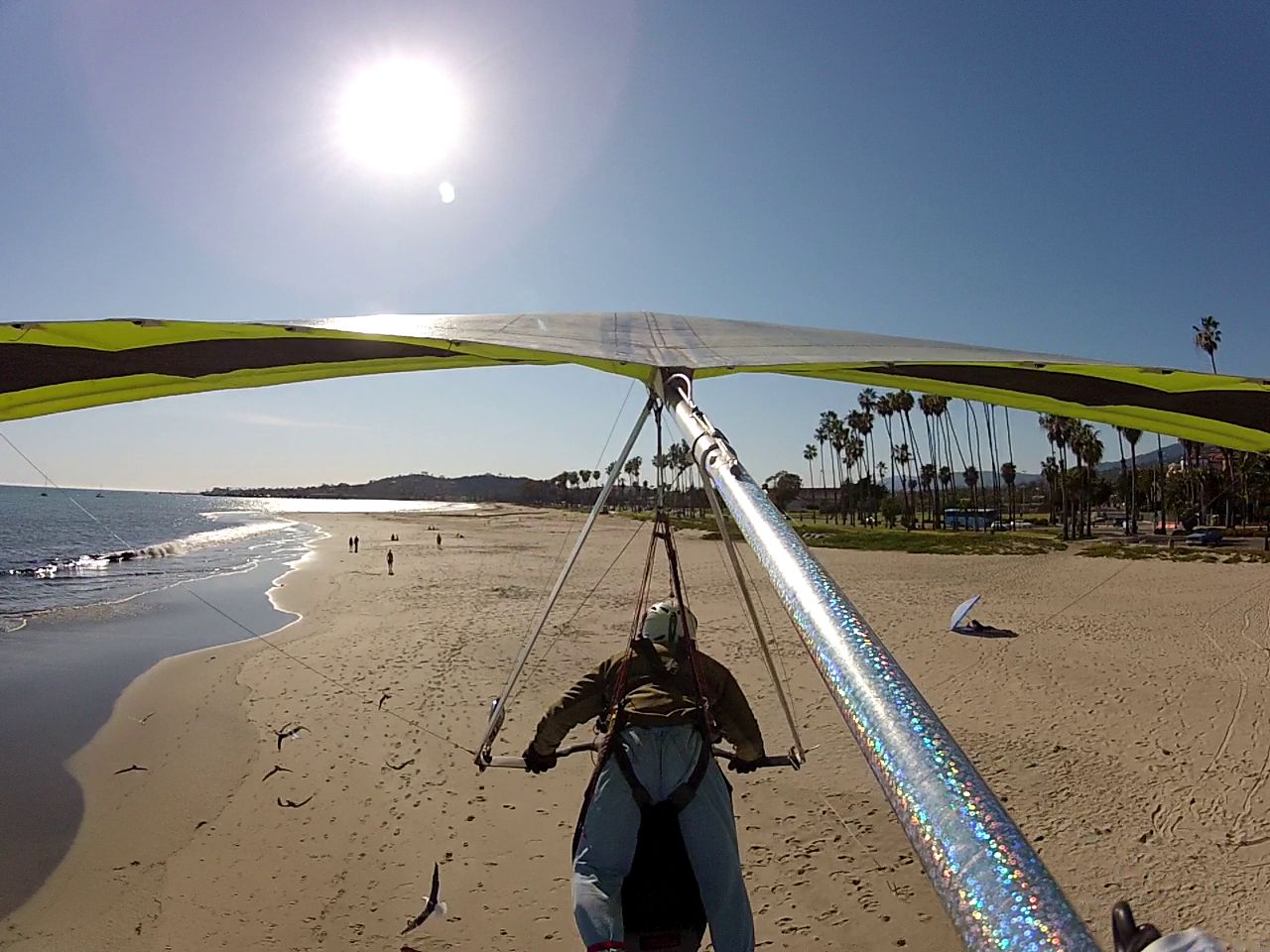 Tavis and Matt got down near the powerlines where Matt was reporting a 27kph headwind. They then glided out to Padaro to enjoy warm beach and ocean swimming in their boxers soon to be joined by Willie and Max. Hammer kindly offered to land at the beach and retrieve. Retirement really suits this gentleman! But I've jumped a bit forward.