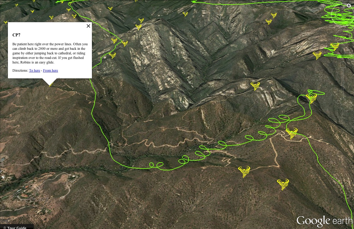 So, thinking to myself "I know it saw a yellow tornado icon on Aarons Google Earth trigger point chart", I know Matt Henzi had a great low save there last year, and it's been really lifty this whole flight and pretty light/smooth wind so being low over terrain for this scratch session should be pretty mellow...
