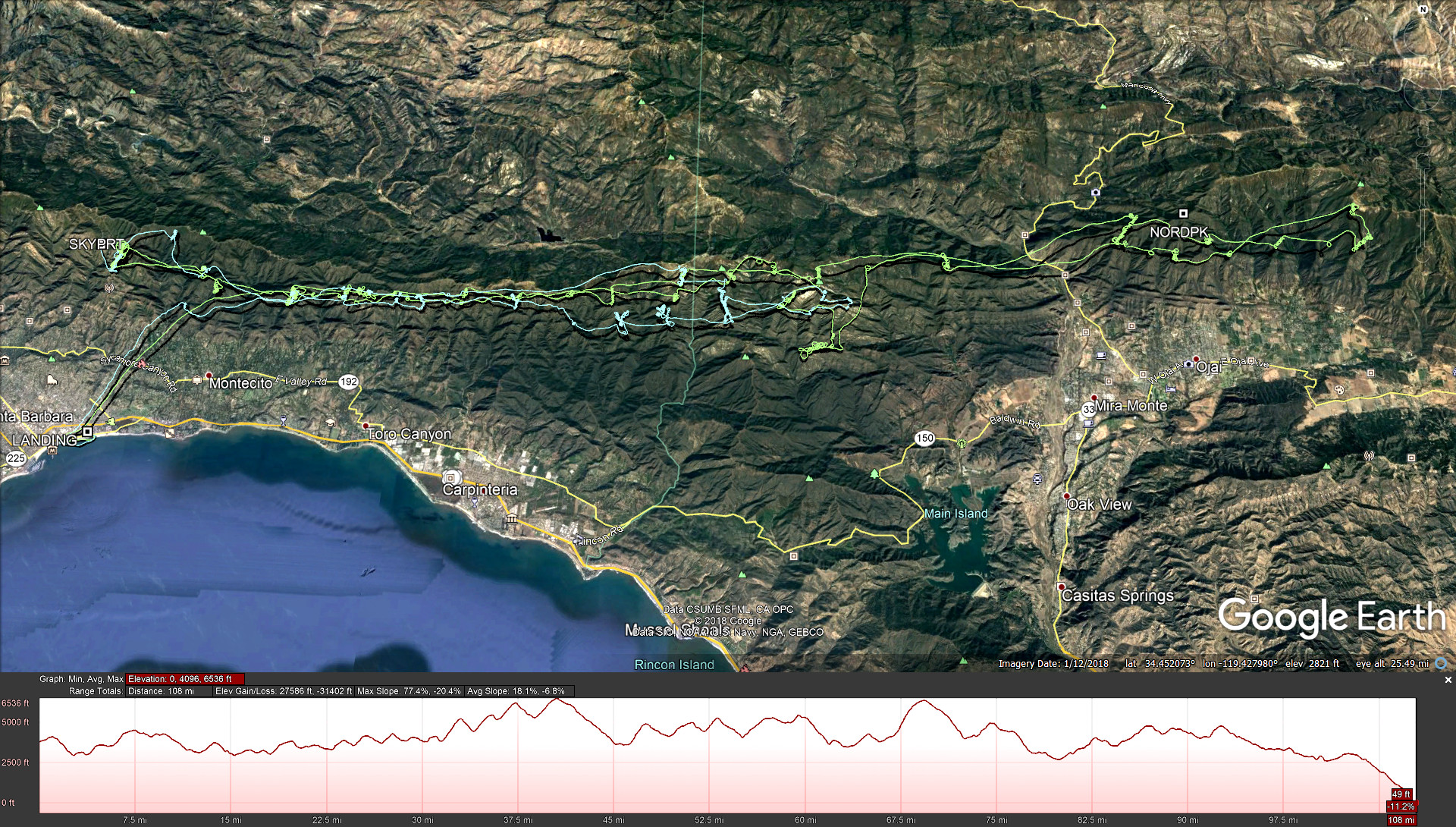 His FAI measured OnR was 53 miles due to the diverging path near Monecito Peak and the 400meter radius rule. Still an epic flight. I bought him supper to thank him for saving me from doing a retrieve.