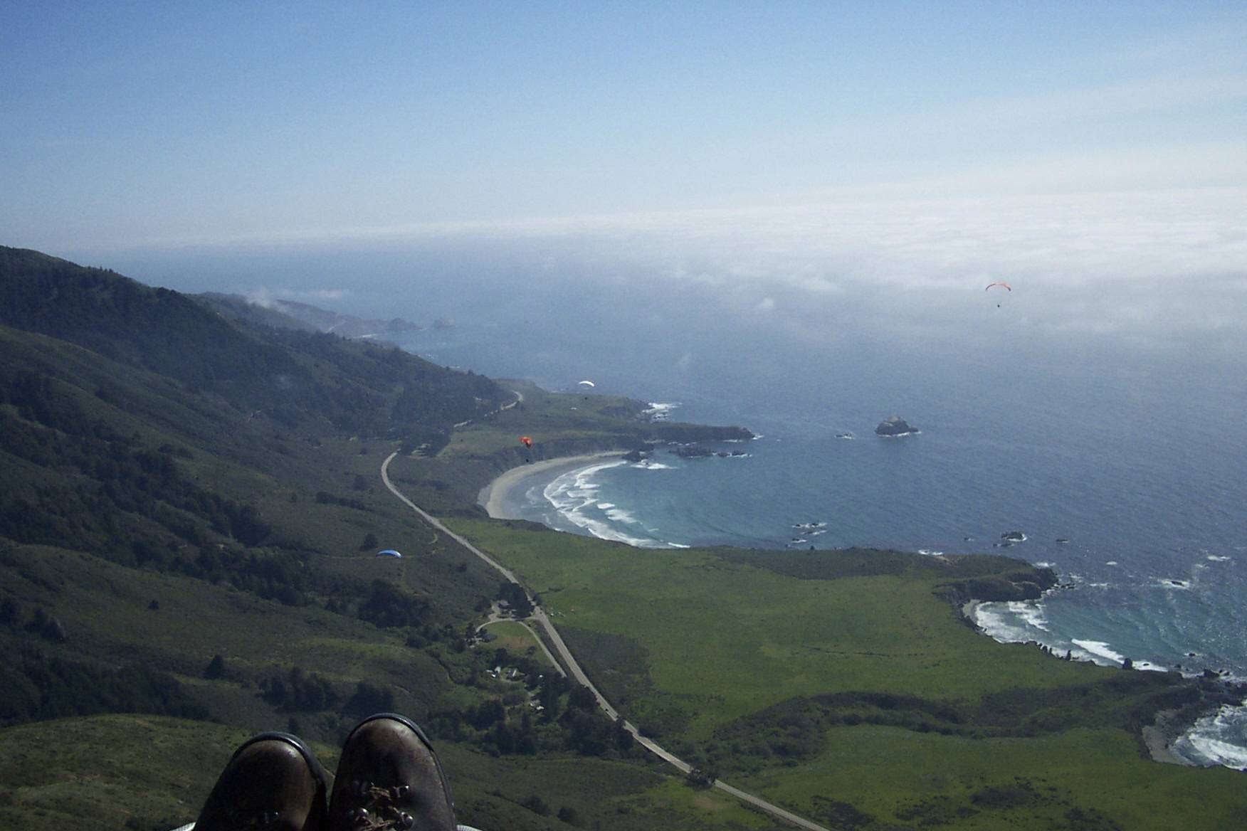 Big Sur was ON! It looked a little bleak Saturday morning with thick fog covering the LZ, but by afternoon it was completely clear. Bo led the way after absconding with Jim's glider and showed us all how it was done. The lift was light 200-400 up but nice and smooth and boosted us up over launch for the top-landing-go-round. I think I got something like 5 landings in under an hour. And if you missed Tony's top landing with a HG you missed one of the great landings of 07.