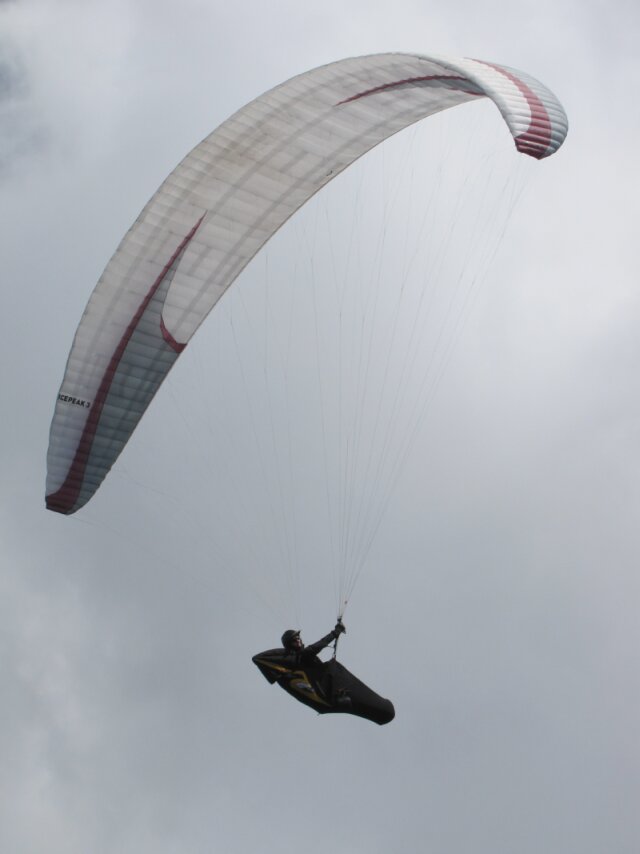 2 much fun! Hardly any wind to speak of, maybe SE 3-4 - if that. I don't like to give up the high ground if I don't have to, but being that cloudbase was below 3k for most of the day we didn't have a choice other than to run the range using only the lower foothills. I have to admit, it made it more interesting, however, one wrong move could have you calling for retrieve early. We all made it, but not without a few VERY low saves. Kabir and I headed to East beach and Bob P. generously picked us up. Several of us met at the Habit for post flight treats and good trash-talkin'